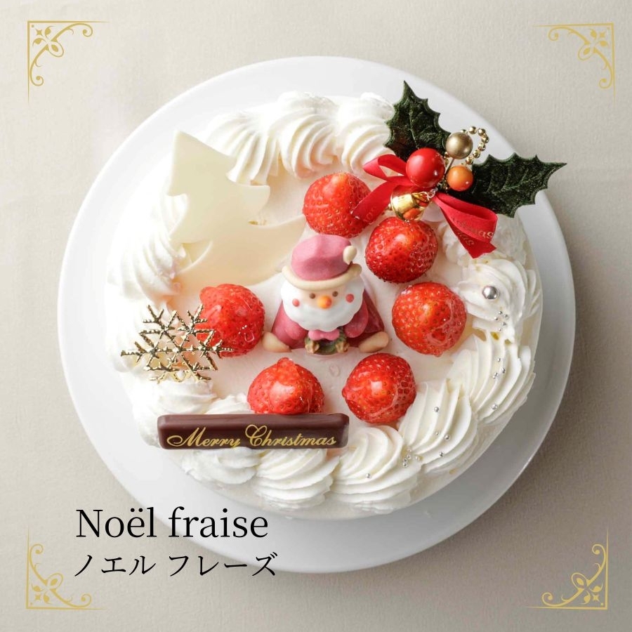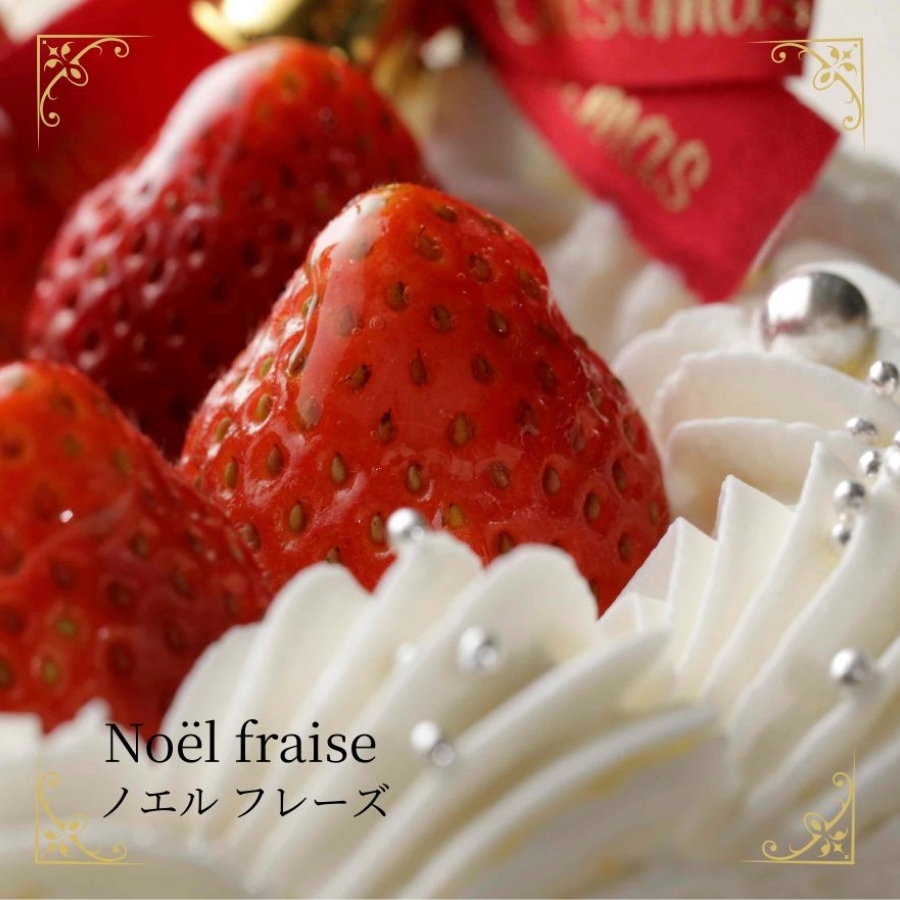 真っ白な生クリームに、艶やかな苺をたっぷりと飾った王道のクリスマスケーキ。ふんわり軽やかなスポンジと、口どけのよい生クリームがとけ合い、ひと口ごとに幸せが広がります。